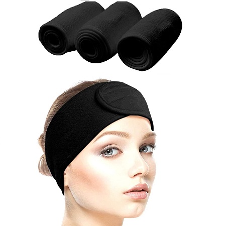 Premium verstelbaar hoofdband van badstof met klittenband, kleur zwart – haarband – Spa hoofdband – Wellness hoofdband – make-up hoofdband –